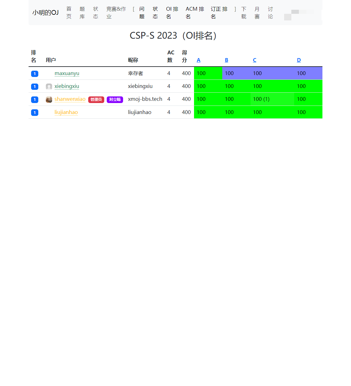 通过小明的OJ增强脚本,您将能够更便捷地参与竞赛,提高AC率,管理代码,优化学习体验,同时享受美化界面带来的愉悦感受。 无论是竞技还是学习,这个脚本都将成为您在小明的OJ平台上的得力助手。 无论您是新手还是经验丰富的竞赛选手,小明的OJ都将为您的比赛体验带来前所未有的便利和效率。 立即安装并体验吧!